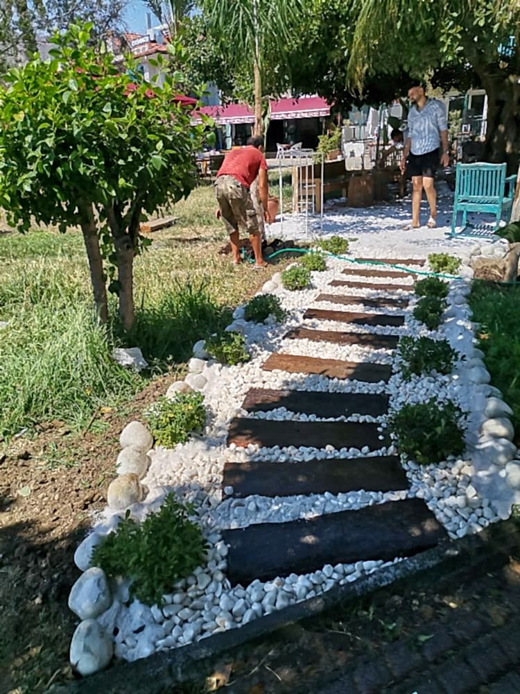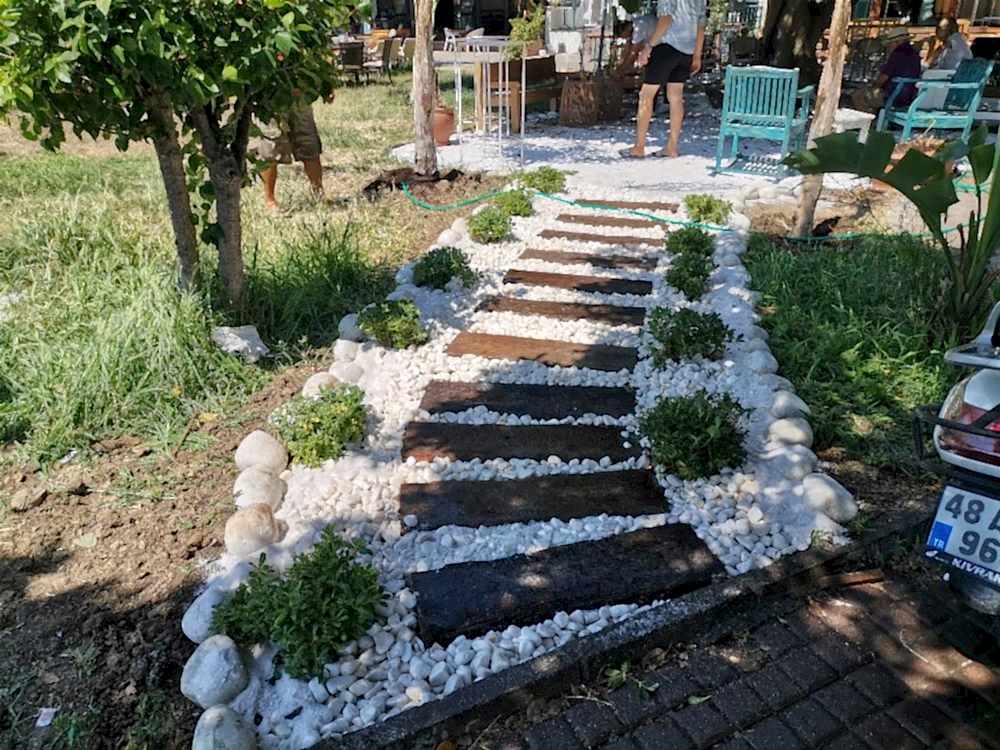 Uygulama alanlarında yürüyüş yolları, oturma alanları için doğal taşlar, parke ve bordür döşeme gibi hizmetler verilmektedir.